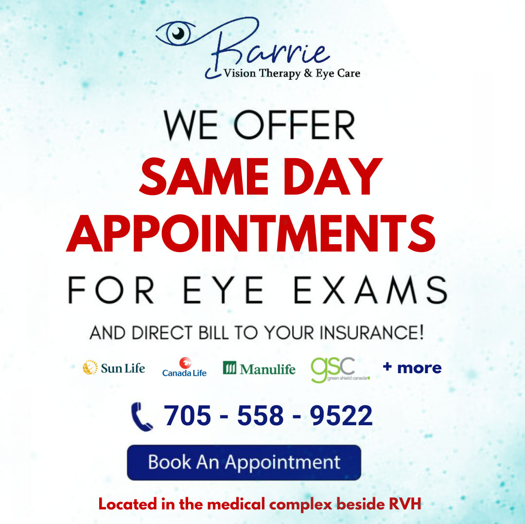 Here at Barrie Vision Therapy & Eye Care, we are proud to serve Barrie and its surrounding communities. Our team of professionals is dedicated to giving our patients the highest quality of optometry care. We offer a full range of optometry services so all of your family’s needs are met under one roof.